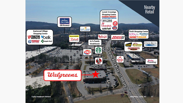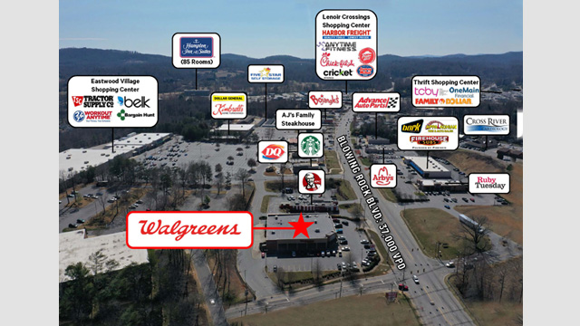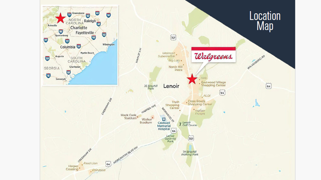 Walgreens is positioned with excellent access and visibility directly on Blowing Rock Boulevard (27,500 VPD), also known as Highway 321, in Lenoir, North Carolina. Less than a mile from the site is the intersection of Highway 321 and U.S. Route 64, which runs from Arizona to the east coast of North Carolina.